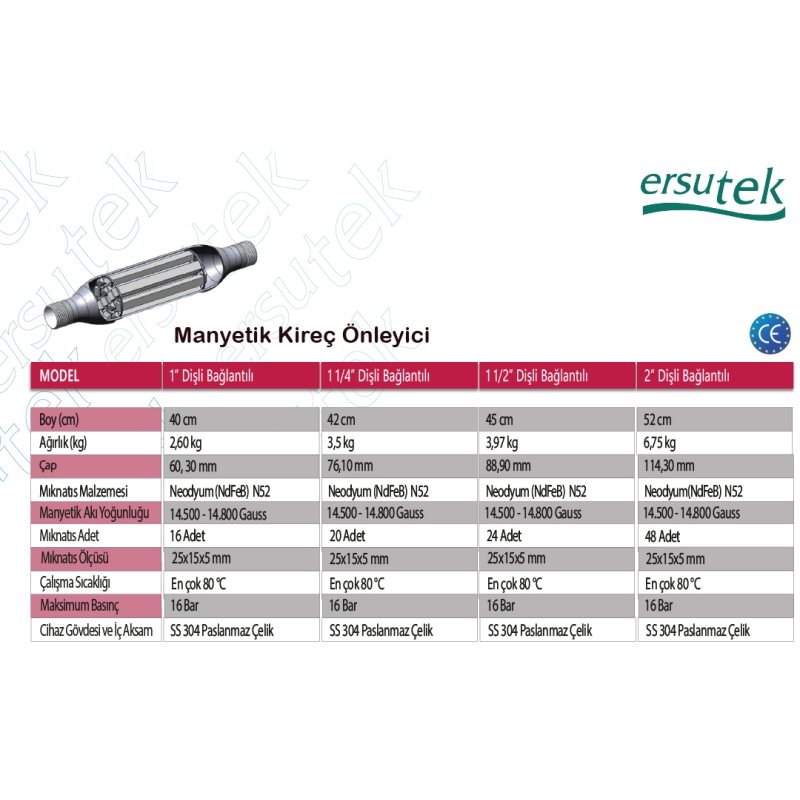 Ersutek’e özel dizayn sayesinde hat üzerinde kireç tutulmasını engeller.